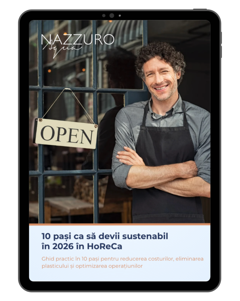 Implementarea unui sistem Nazzuro transformă apa dintr-un cost într-o sursă de profit pentru locațiile Horeca. Prin purificarea apei direct la locație, costul pe litru scade, iar marja pentru fiecare pahar servit crește. În același timp, sunt eliminate costurile logistice legate de transportul și depozitarea apei îmbuteliate. Investiția se amortizează în aproximativ 24 de luni, iar diferența de cost se transformă ulterior în profit direct.